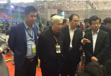 在今年4月舉行的2017RoboCup機器人世界杯中國賽暨國家機器人發(fā)展論壇上,愛國小男孩科技CEO盧平山(左一)、中科院吳宏鑫院士(左二)、日照市市長齊家濱(右一)一起參觀賽場